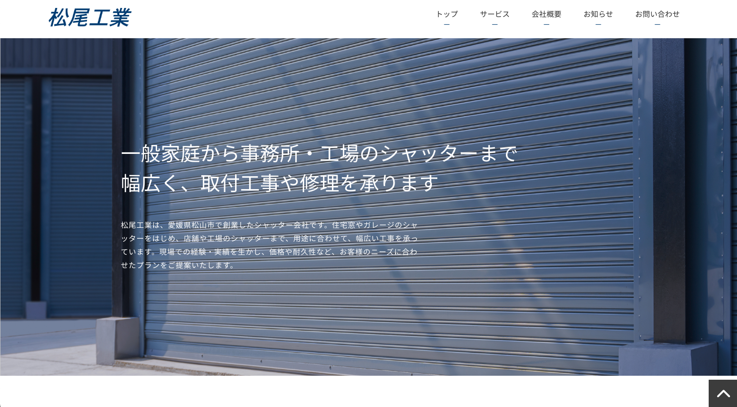 松尾工業の公式サイトをオープンいたしました。 2024.09.04 お知らせ この度、松尾工業公式サイトをオープンいたしました。 今後とも皆様へのサービス向上のため、ホームページのコンテンツの充実に努め、様々な情報を皆様に発信して参りますので、松尾工業をよろしくお願いいたします。